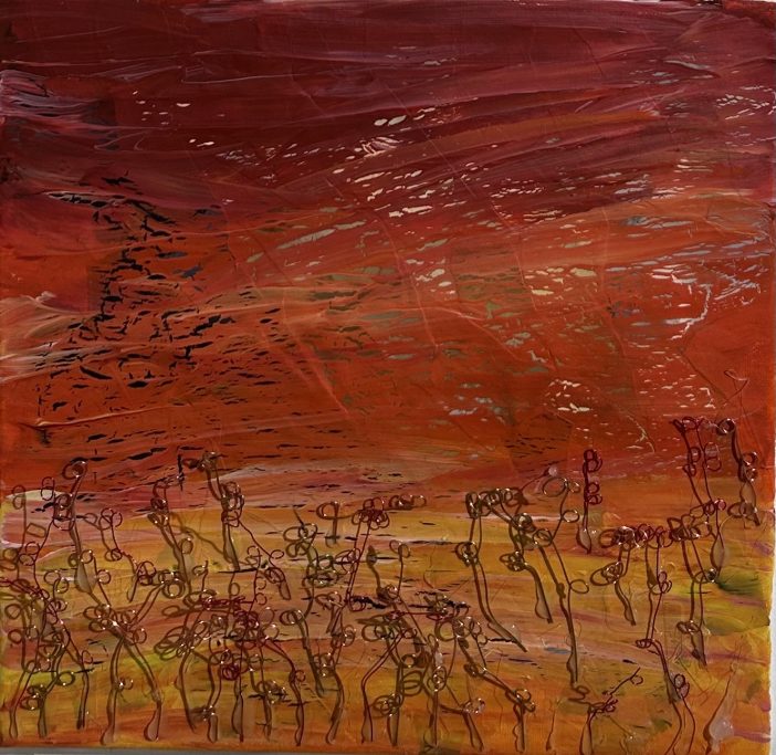 Incorporating mixed media these pieces are full of texture. They depict natural forms, abstracted yet recognisable, showing our deep connection to nature and the created world.