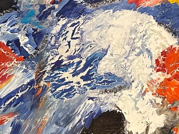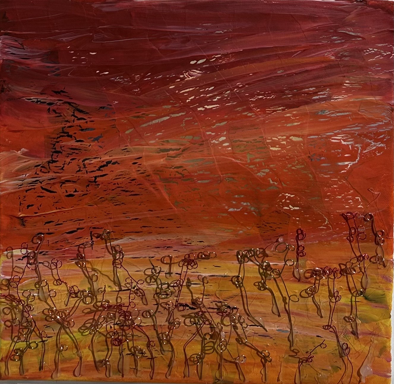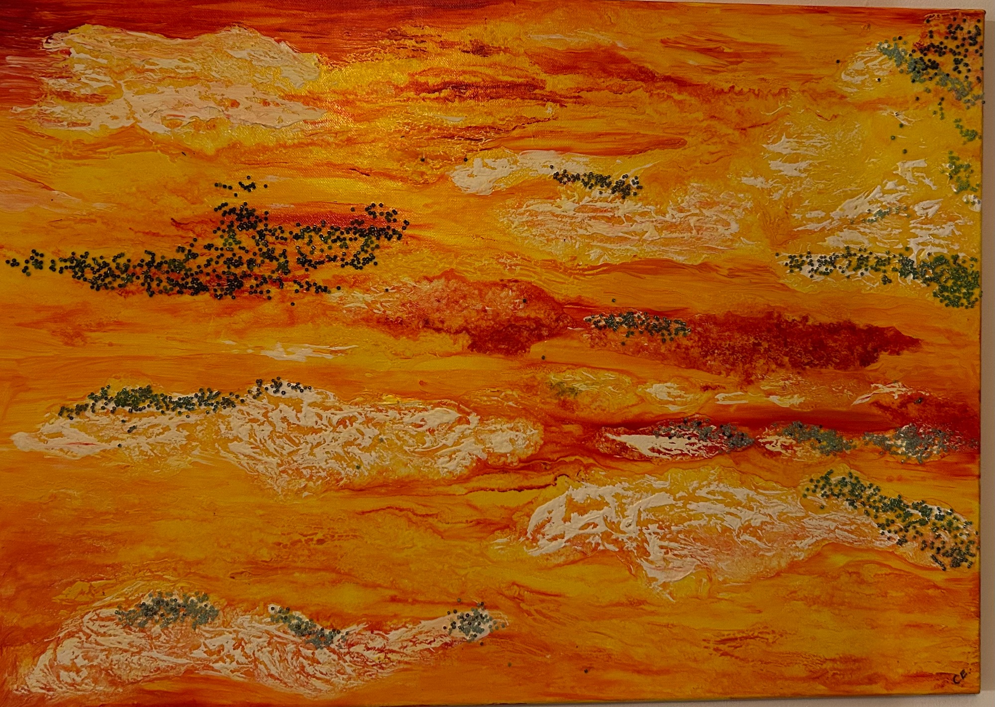 Mixed media canvas with acrylic, beads and PVA.